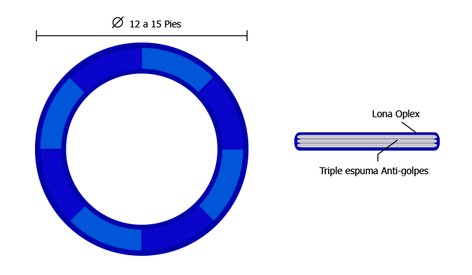 Fabricamos las colchonetas para brincolines con las siguientes tallas: 3m (10ft), 3.6m (12ft) y 10 m (15 ft) Diámetro.